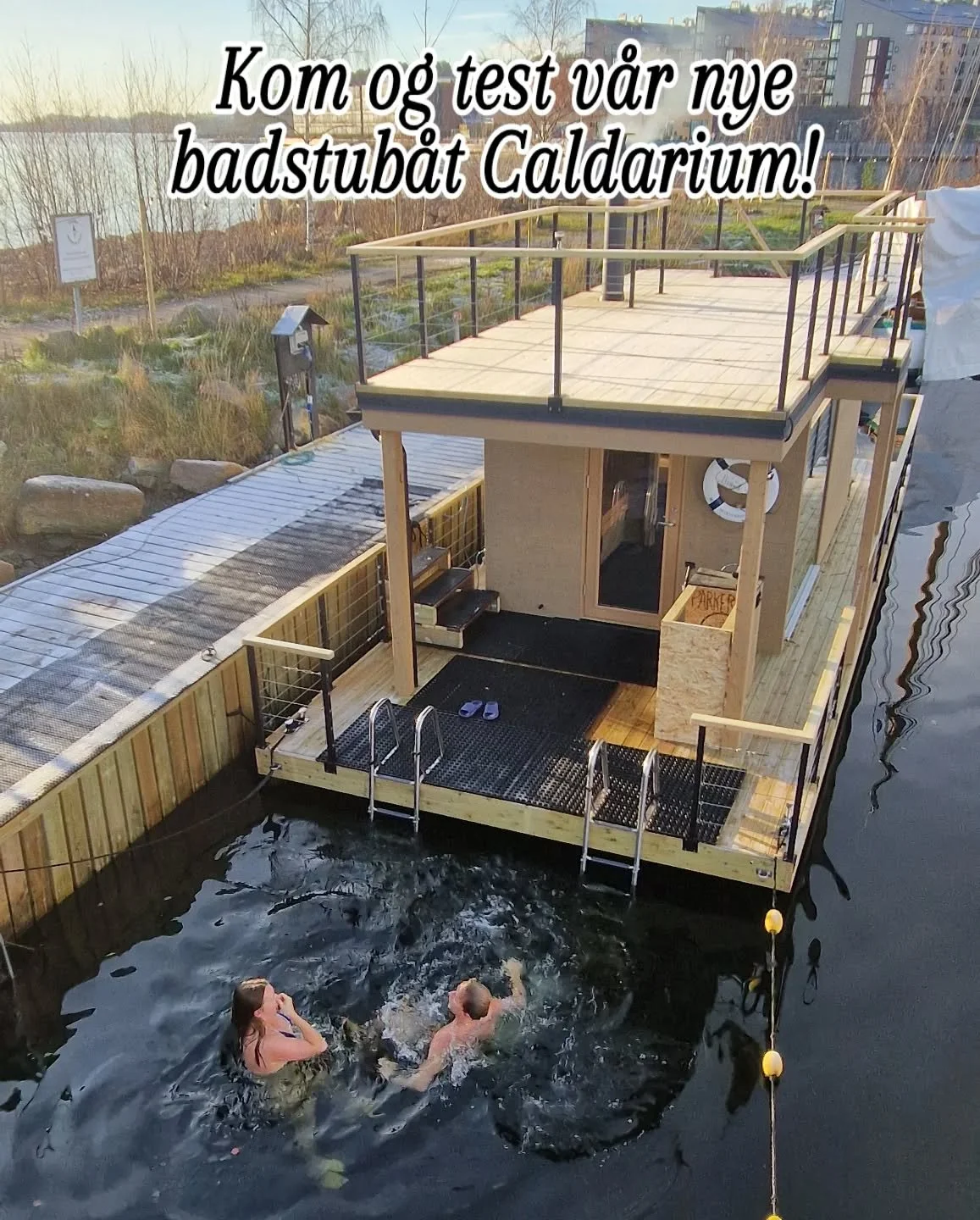 Gratulerer til Fjordtokt og nabolaget, som nå har fått et tredje badstutilbud ytterst på moloen utenfor Sollerudstranda. Caldarium heter den nye badstubåten.