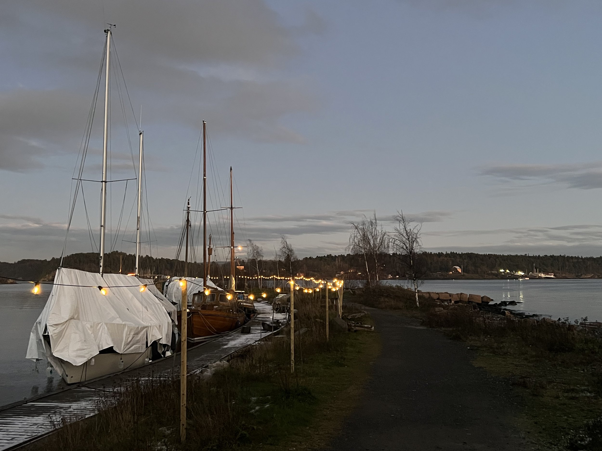 Det hyggelige er også at Eivind har tatt initiativ til og fått opp lyslenker utover moloen, for et område som ellers er veldig mørkt på denne tiden av året. Det setter vi alle pris på!